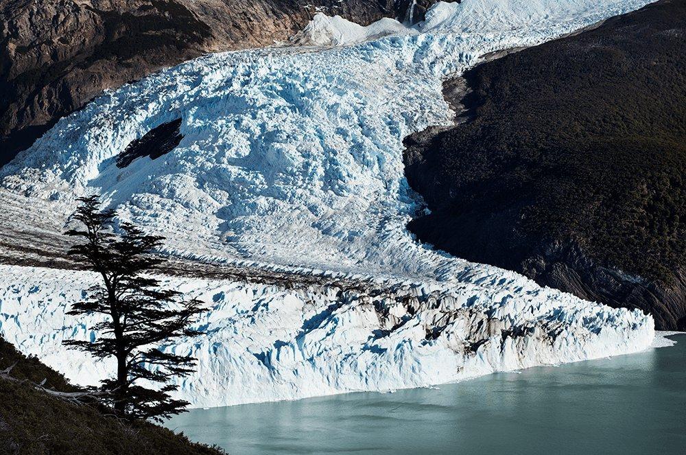 Il Ghiacciaio Spegazzini nel Parco Nazionale di Los Glaciares (Patagonia Argentina) si getta nel Lago Argentino con una falesia alta oltre 100 m. Il ghiacciaio è alimentato dallo Hielo Patagonico Sur, il gigantesco icefield, altopiano vasto oltre 12.000 km², che raccoglie la maggiore quantità di ghiaccio della zona temperata dell’emisfero meridionale. Il Ghiacciaio Spegazzini, come altri nella stessa regione, sta rispondendo lentamente ai cambiamenti climatici e la sua fronte è quasi stabile da alcuni decenni. Ulteriore testimonianza di come il regresso glaciale sia un fenomeno molto complesso e nelle sue relazioni con i cambiamenti climatici si debbano considerare anche fattori locali. In questo caso, ad esempio, la vastità dell’altopiano di ghiaccio che lo alimenta.