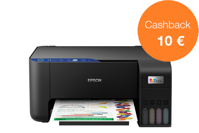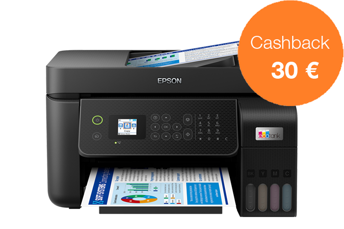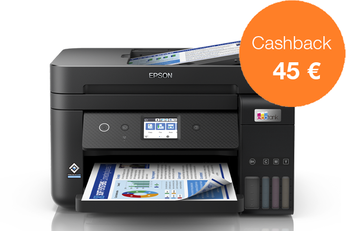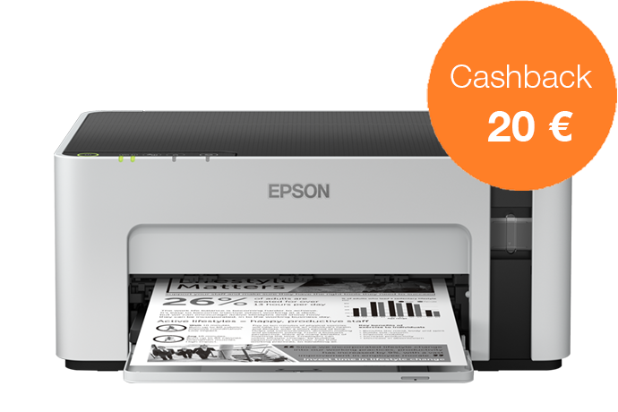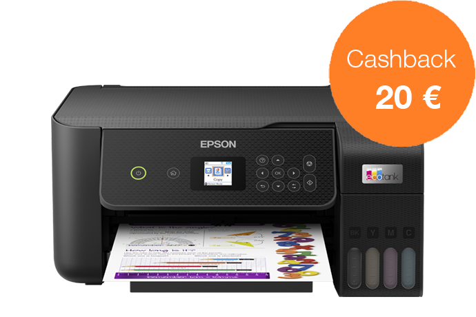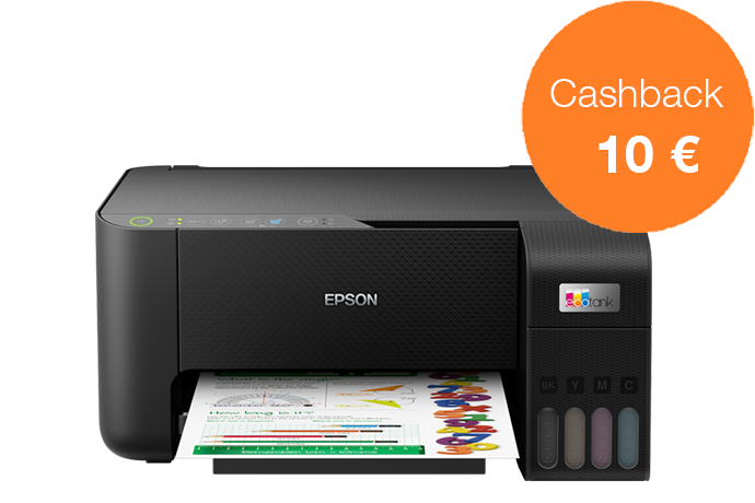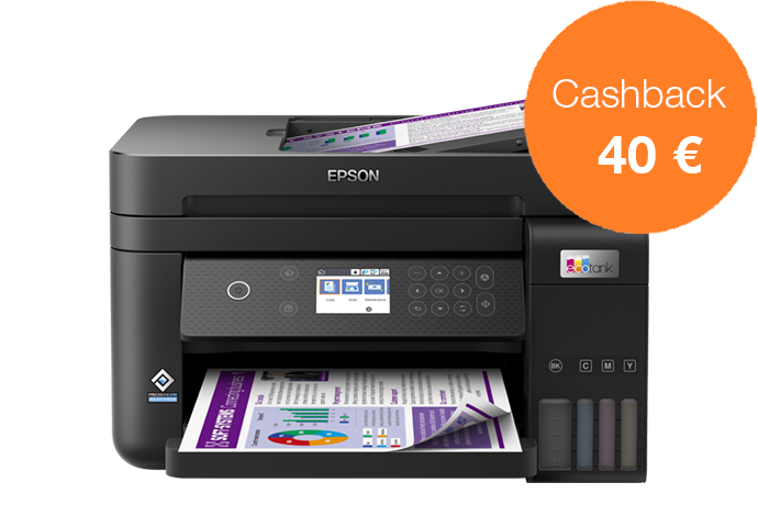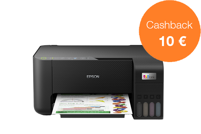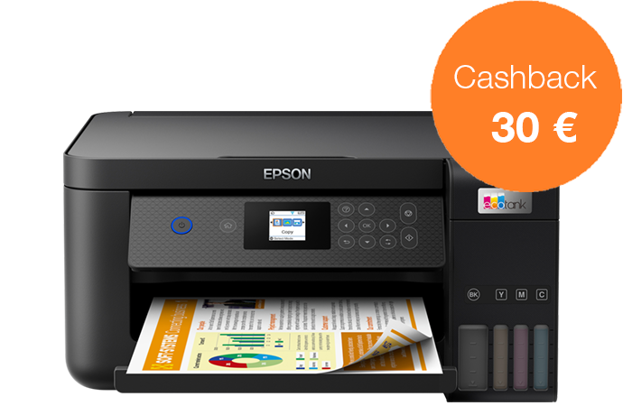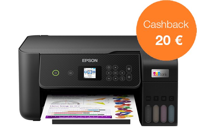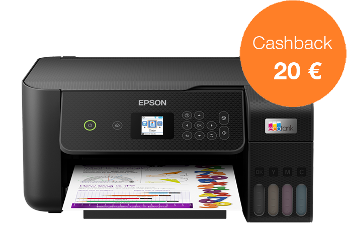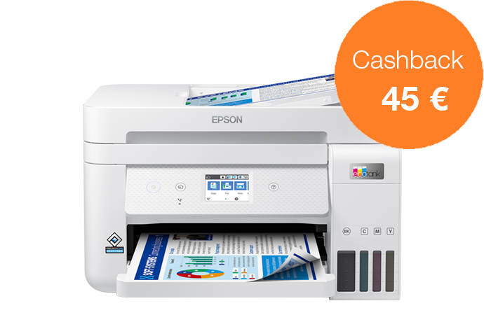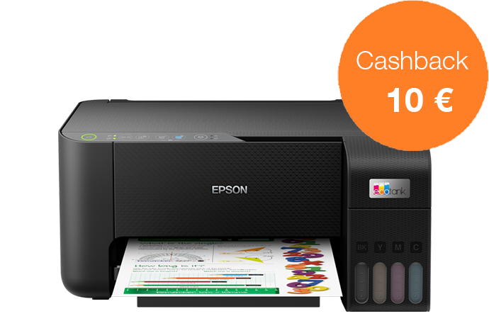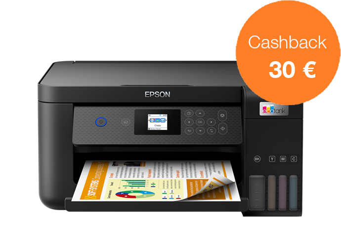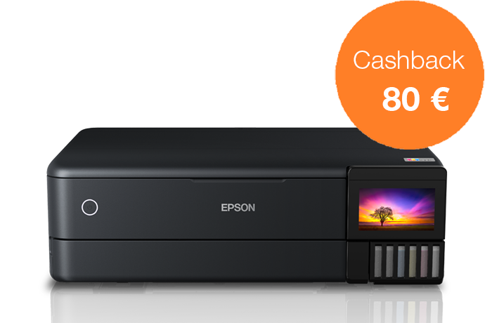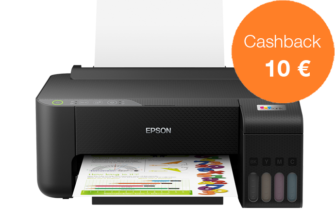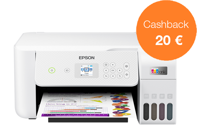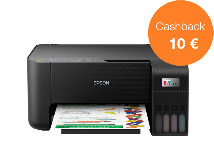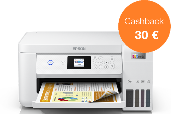 Acquista una stampante EcoTank dal 1 novembre al 31 dicembre 2022 e ricevi fino a 80 € di cashback registrandoti entro 30 giorni, per un risparmio ancora maggiore.